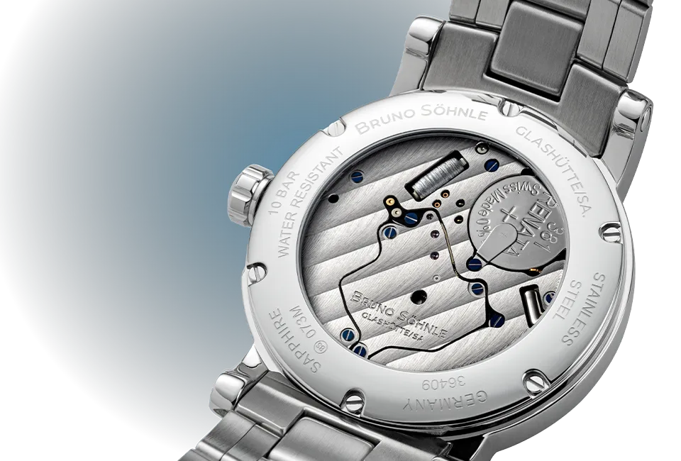 Im 43-mm-Edelstahlgehäuse arbeitet ein handveredeltes, hochpräzises Quarzwerk (Basis Ronda 7003.L) – sorgfältig bearbeitet in unserer Glashütter Feinmechanik Werkstatt. Durch den Glasboden können Sie das robuste Uhrwerk jederzeit bewundern, was uns eine gewisse Einzigartigkeit in Glashütte verleiht. Es garantiert maximale Ganggenauigkeit, wartungsarme Zuverlässigkeit und jene Alltagstauglichkeit, die man von einer modernen Premiumuhr erwartet.