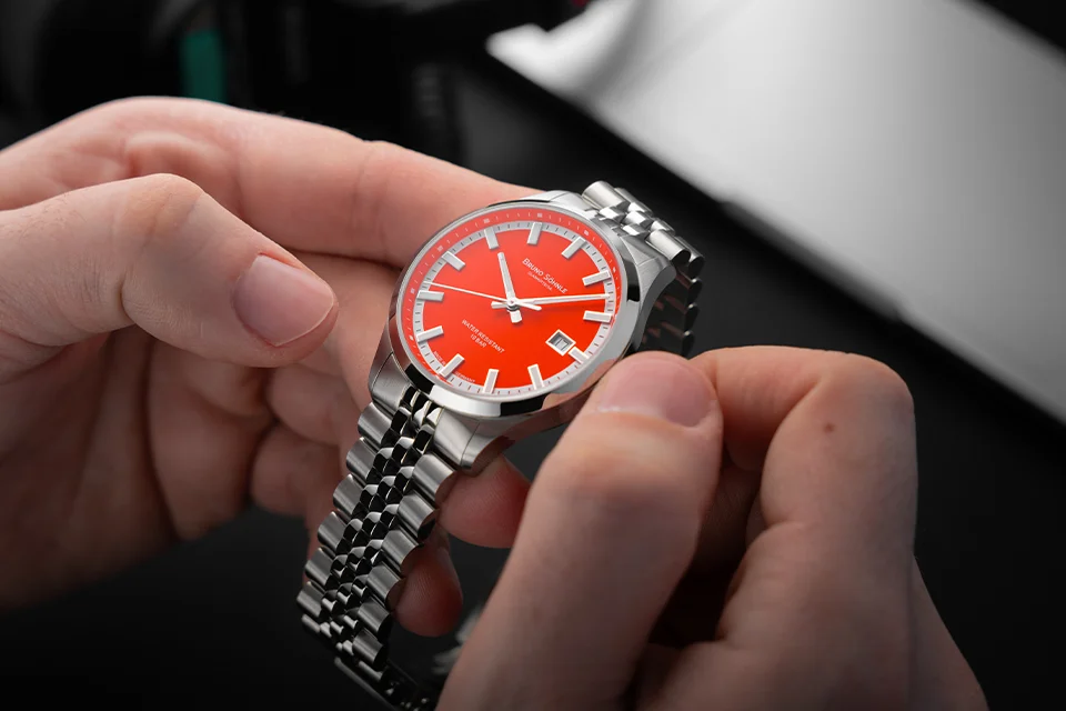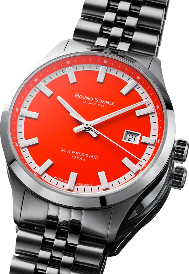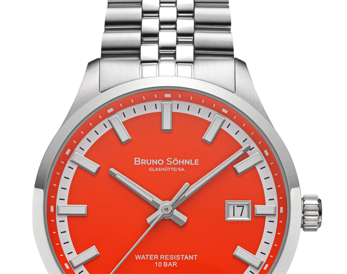 Das intensiv leuchtende „Bright Red“ des Zifferblatts verkörpert weit mehr als bloße Farbgestaltung – es verkörpert pure Dynamik und charakterstarke Ausdruckskraft. Der außergewöhnliche Kontrast zwischen leuchtendem Orange-Rot und silberfarbenen, applizierten Indexen sorgt nicht nur für exzellente Ablesbarkeit, sondern verleiht der Uhr eine unverwechselbare Präsenz am Handgelenk.