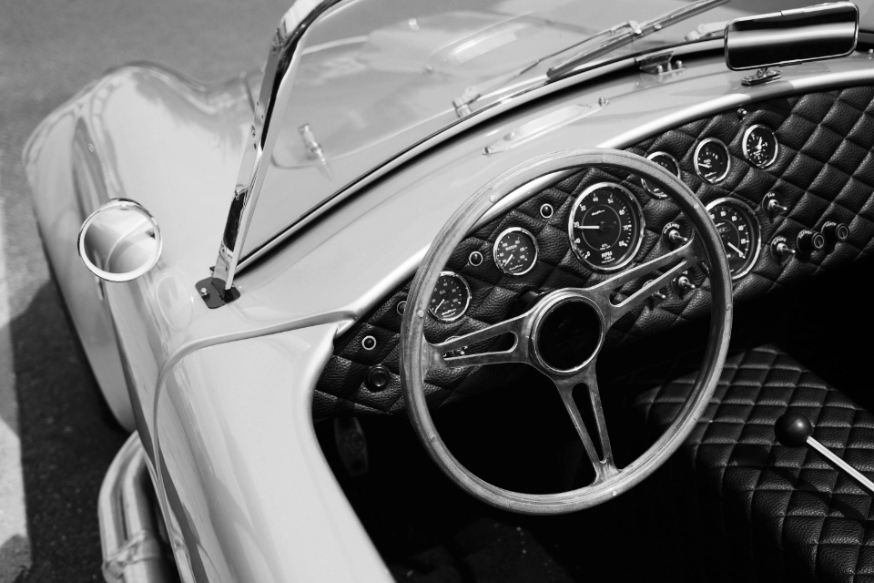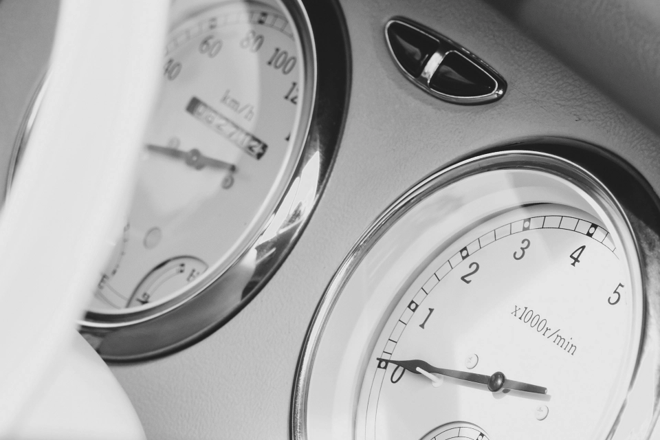The dashboard of a classic car. Round instruments, clear scales, finely tuned proportions.