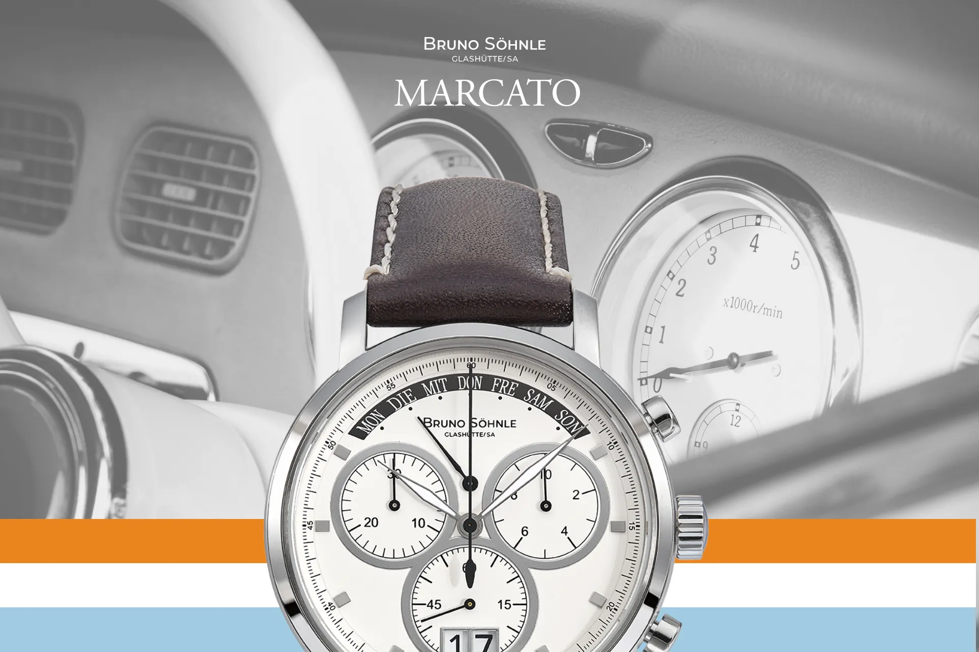 Large subdials, clearly structured scales, precisely positioned hands: the Marcato is inspired by the aesthetics of classic cockpit instruments.